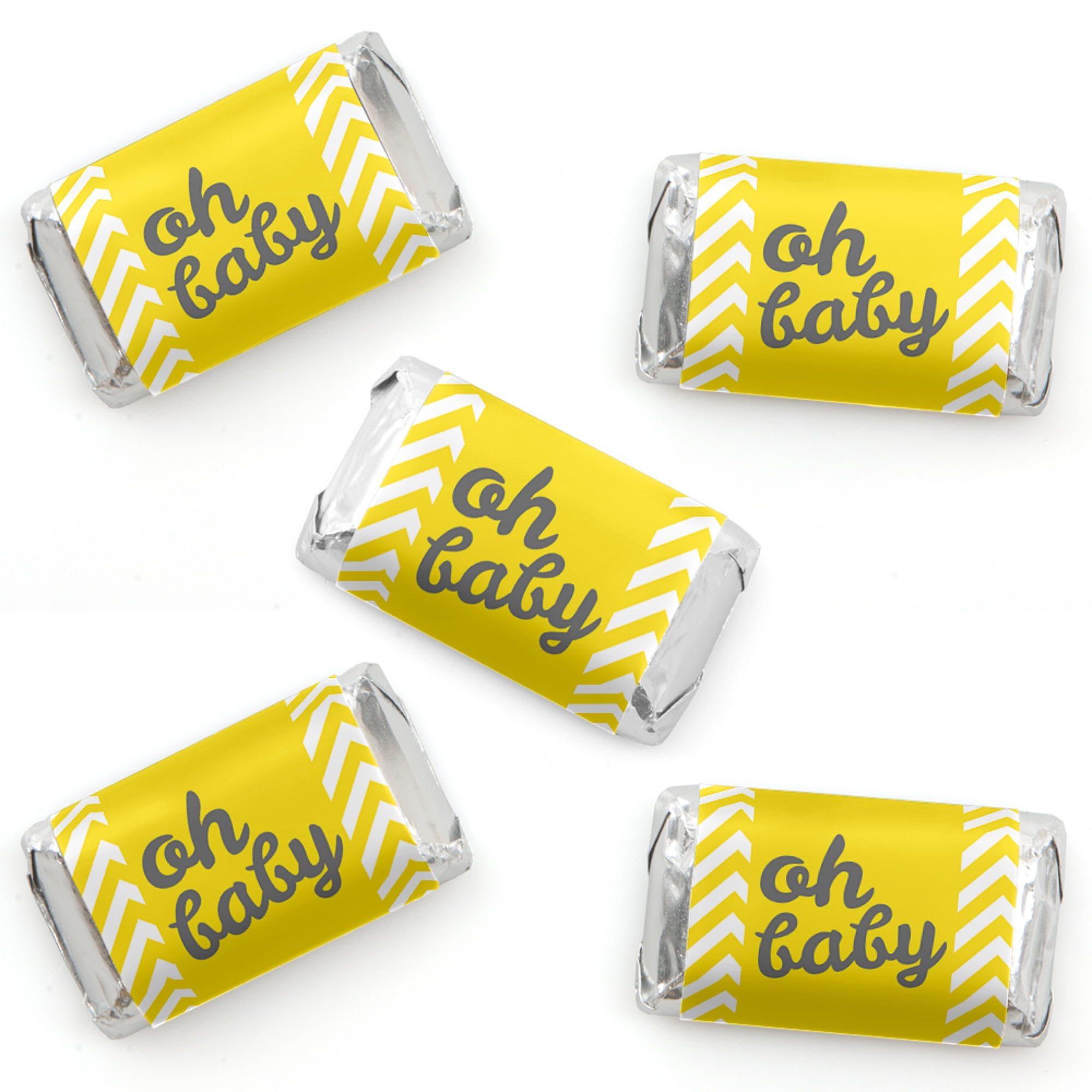 Hello Little One Yellow And Gray Mini Candy Bar Wrapper Stickers Neutral Baby Shower Small Favors 40 Count Walmart Com Walmart Com