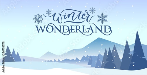 Winter Wonderland Banner Vector Illustration Greeting Postcard With Picturesque View On Snowy Mountains And Trees Decorated With Snowflakes Xmas Eve Concept Buy This Stock Vector And Explore Similar Vectors At Adobe