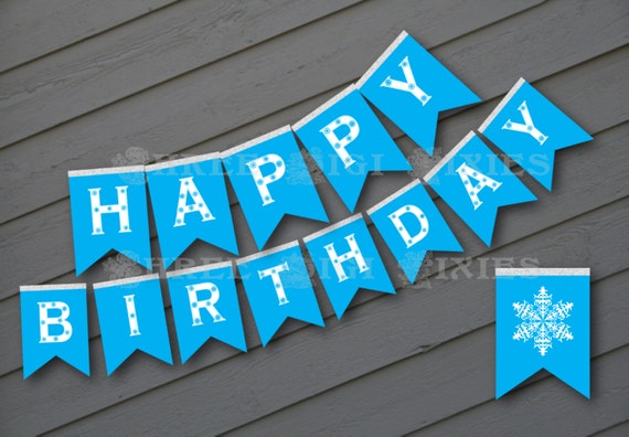 Frozen Happy Birthday Banner Printable Banner Winter Wonderland Party Decorations And Supplies Snowflake Instant Download Dp951 By Belowblink Catch My Party