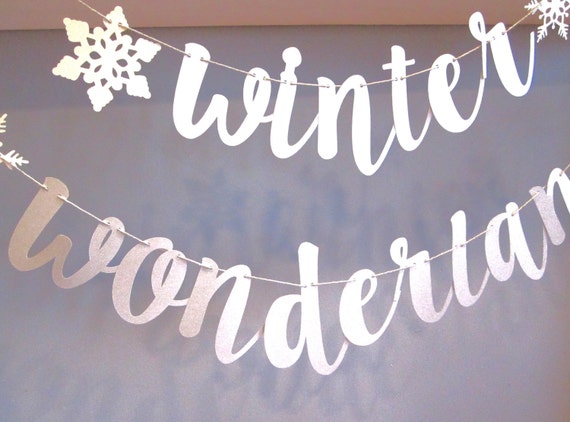 Winter Wonderland Banner With Snowflakes Christmas Banner Glitter Party Decorations Cursive Banner Glitter Party Decorations Winter Wonderland Decorations Winter Party Decorations