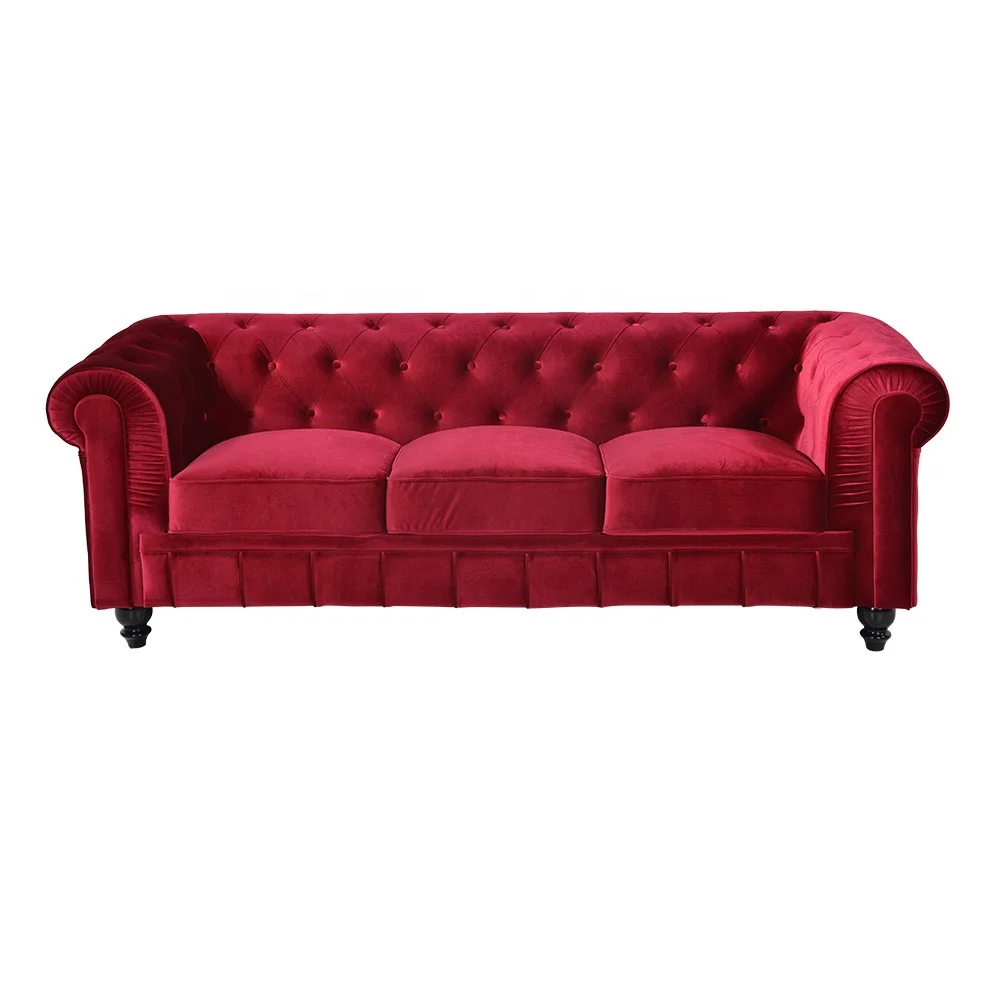 China Home Furniture Living Room Modern Red Fabric Velvet Chesterfield Sofa Leisure Couch Set Hotel Bedroom China Sofa Velvet Sofa