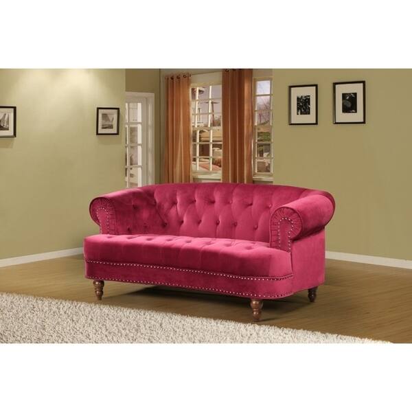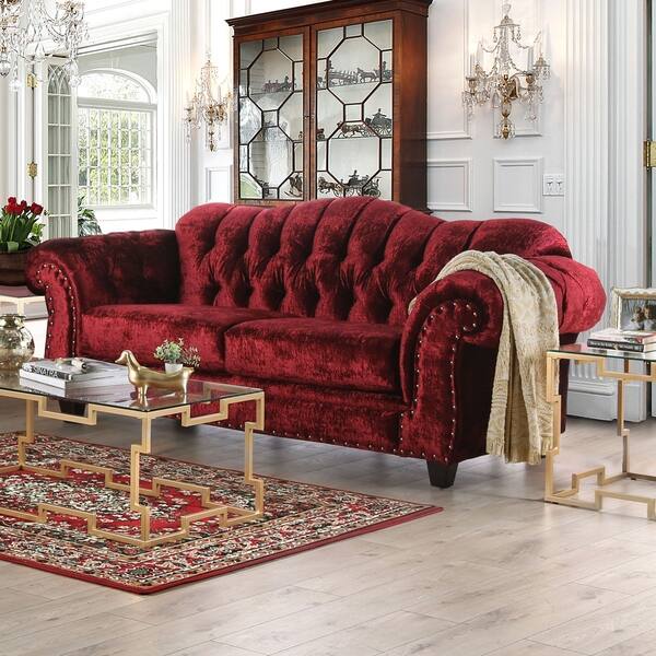 Furniture Of America Tace Transitional Red Velvet Tufted Nailhead Sofa On Sale Overstock