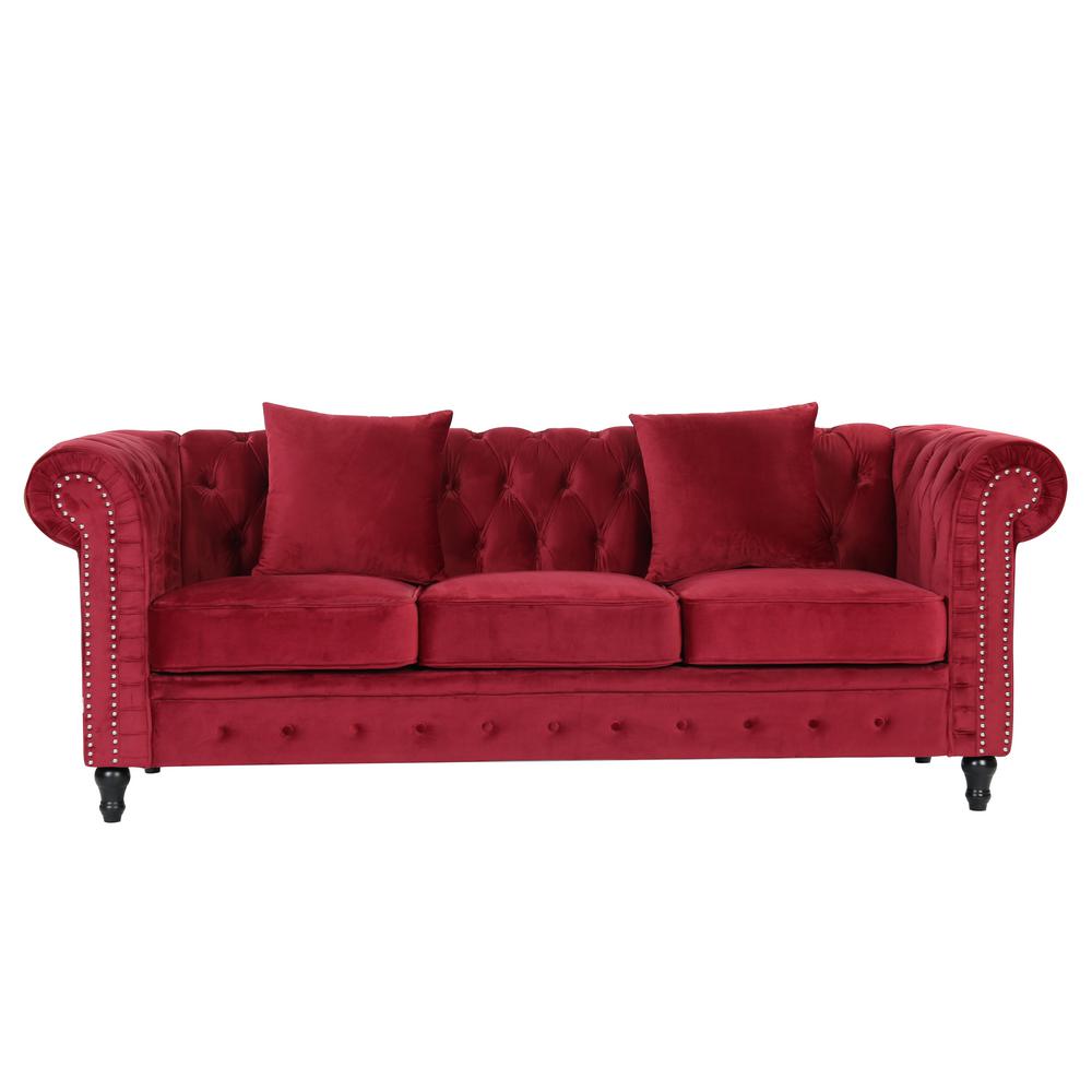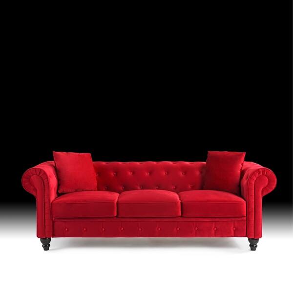 Boyel Living In Red Button Tufted Velvet Fabric 3 Seates Chesterfield Sofa With Rolled Flared Arms Wf Hfsn 156r The Home Depot