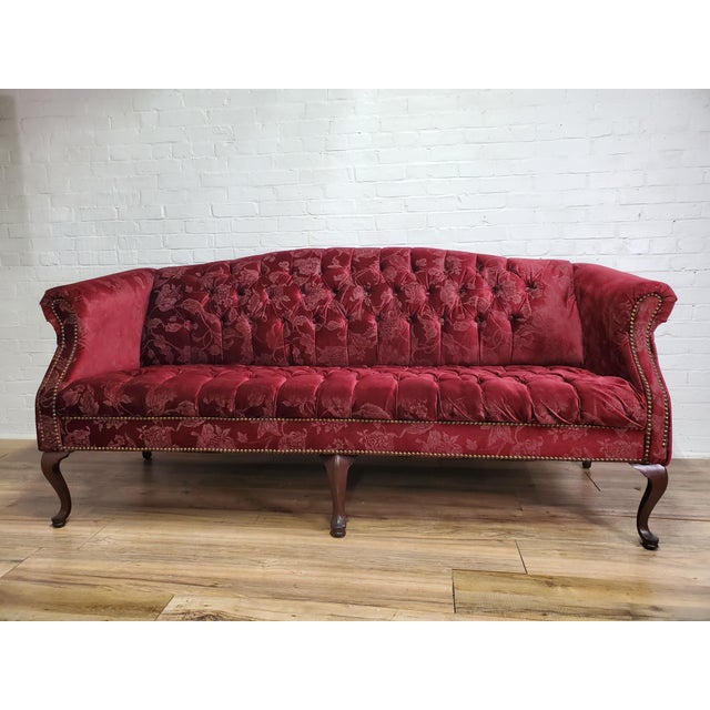 Vintage Red Velvet Chesterfield Couch Victorian Burgundy Etsy Velvet Tufted Sofa Vintage Sofa Crushed Velvet Sofa