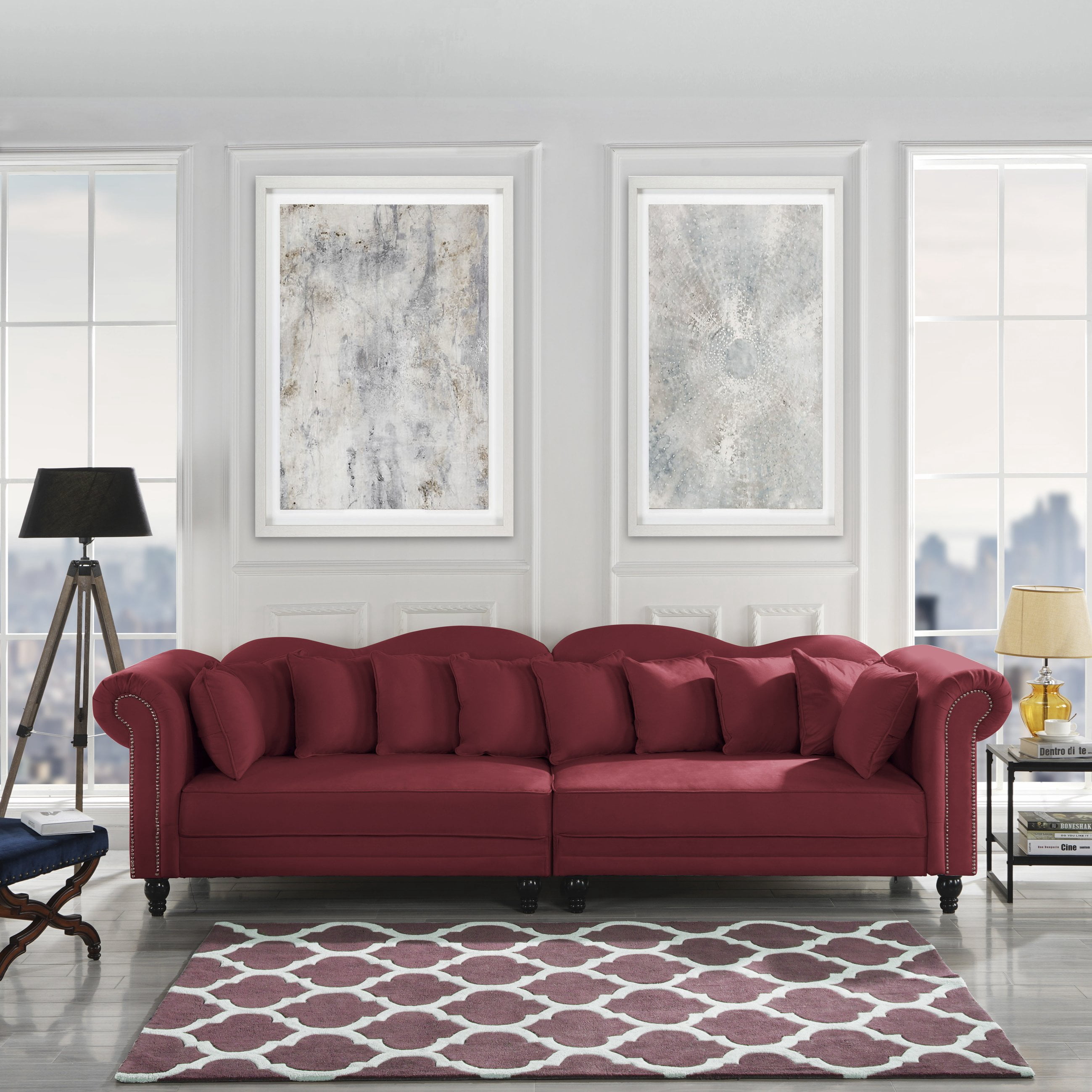 Mobilis Classic Microfiber Velvet Scroll Arm Tufted Button Chesterfield Sofa Red Walmart Com Walmart Com