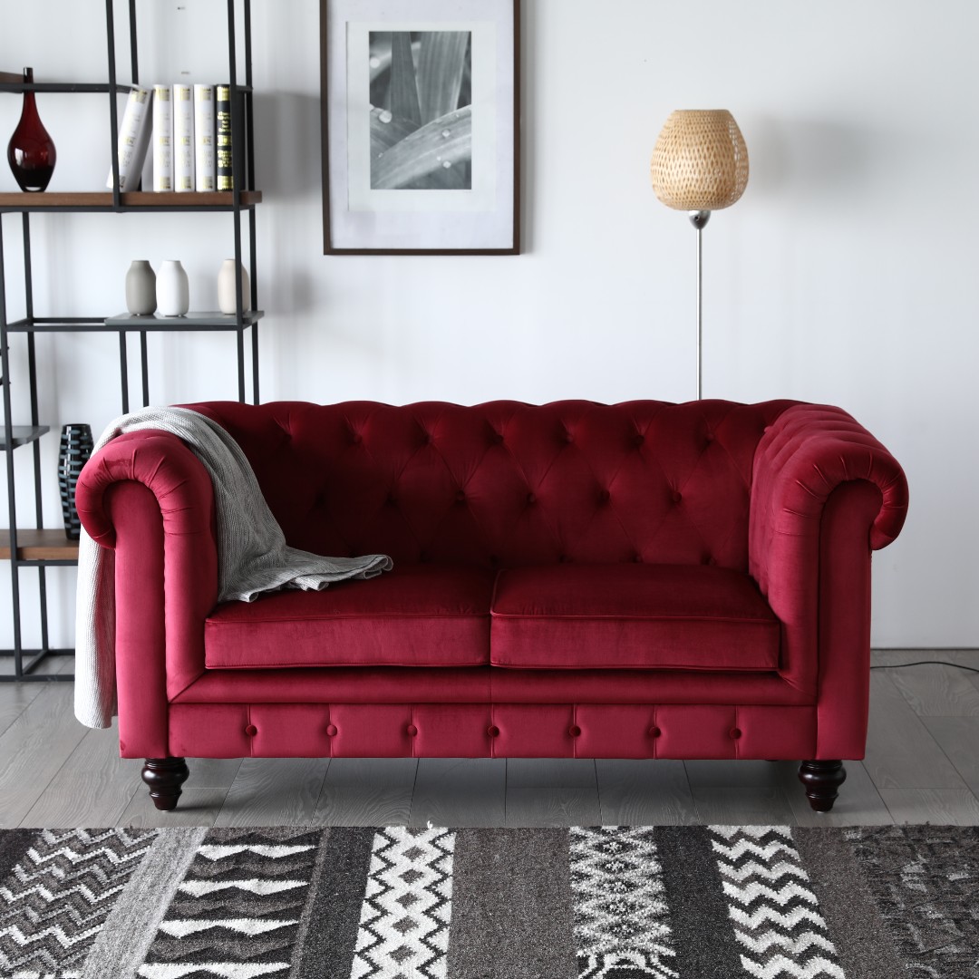 Donna Red Velvet Chesterfield Sofa Locate To Create