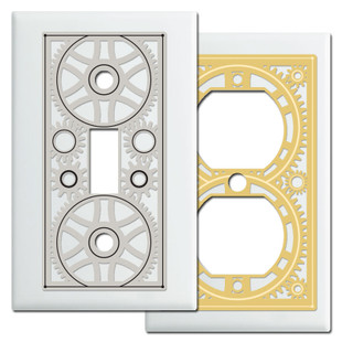 Steampunk Industrial Decor Switch Plate Covers In White Kyle Design