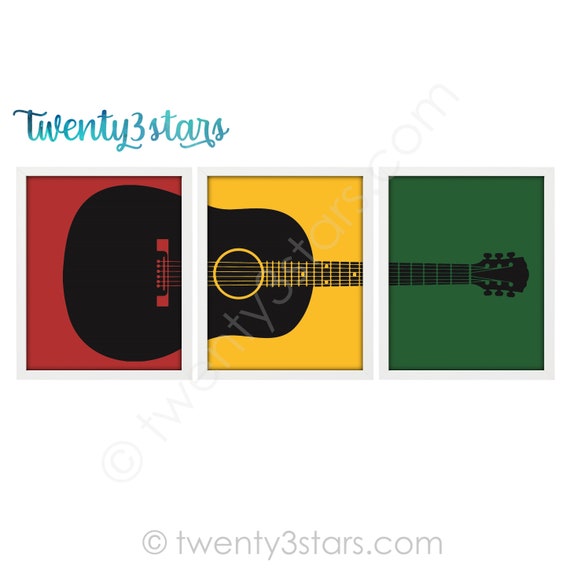 Acoustic Guitar Posters Guitar Poster Art Triptych Gift For Etsy