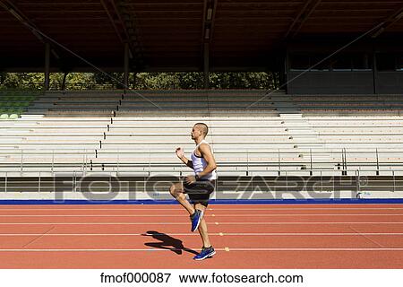 Young Sportsman Running On Tartan Track Stock Photo Fmof Fotosearch