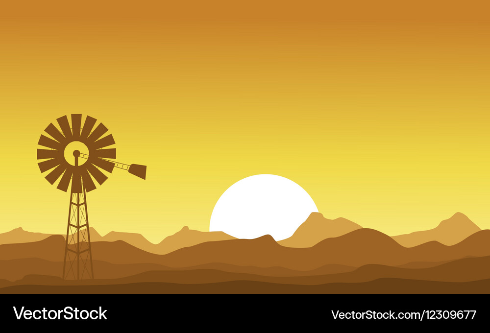 At Sunset Windmill Beautiful Scenery Royalty Free Vector