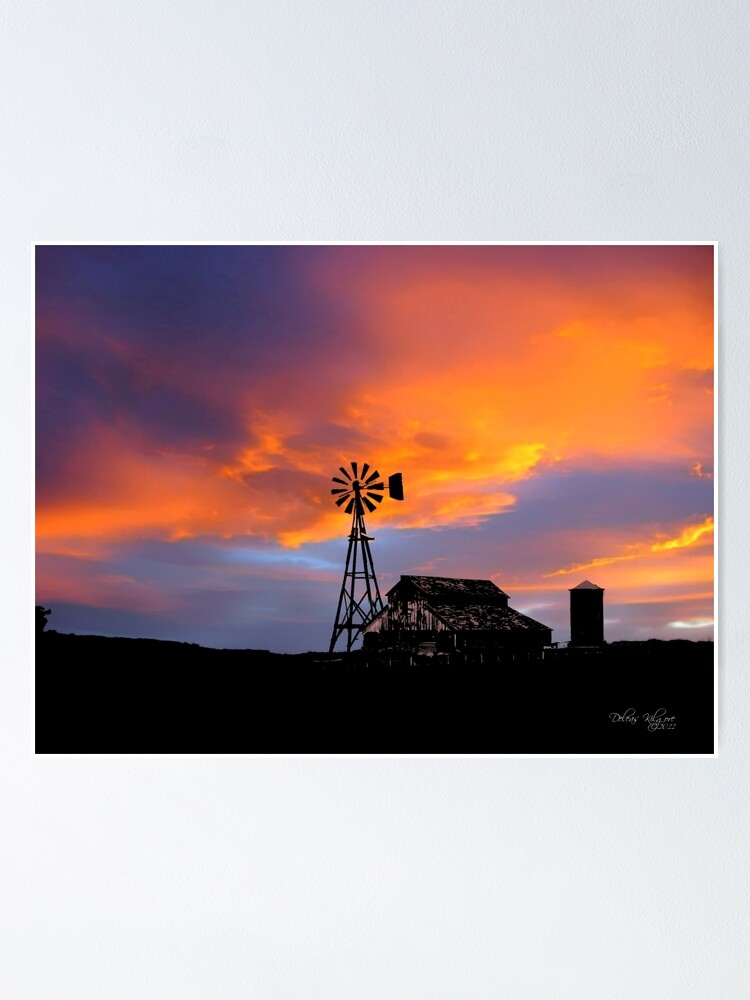 Sunset Barn And Windmill Poster By Deleas Redbubble