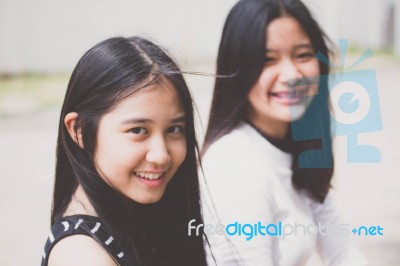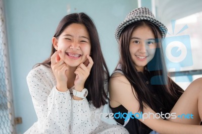 Two Asia Thai Teen Best Friends Girls Smile And Funny Stock Photo Royalty Free Image Id