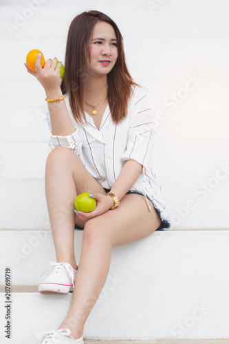 Beautiful Asia Teen Girl Holding Vegetables And Fruits Posing Make Gestures With Fun And Happy Buy This Stock Photo And Explore Similar Images At Adobe Stock Adobe Stock