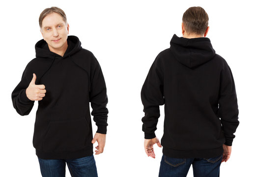 Men Hoody Fashion Sweatshirt Template Realistic Outerwear Clothes Mockup Front And Back View Long Sleeve Hoody Template On White Background Sport And Urban Style Vector Premium Vector In Adobe Illustrator Ai