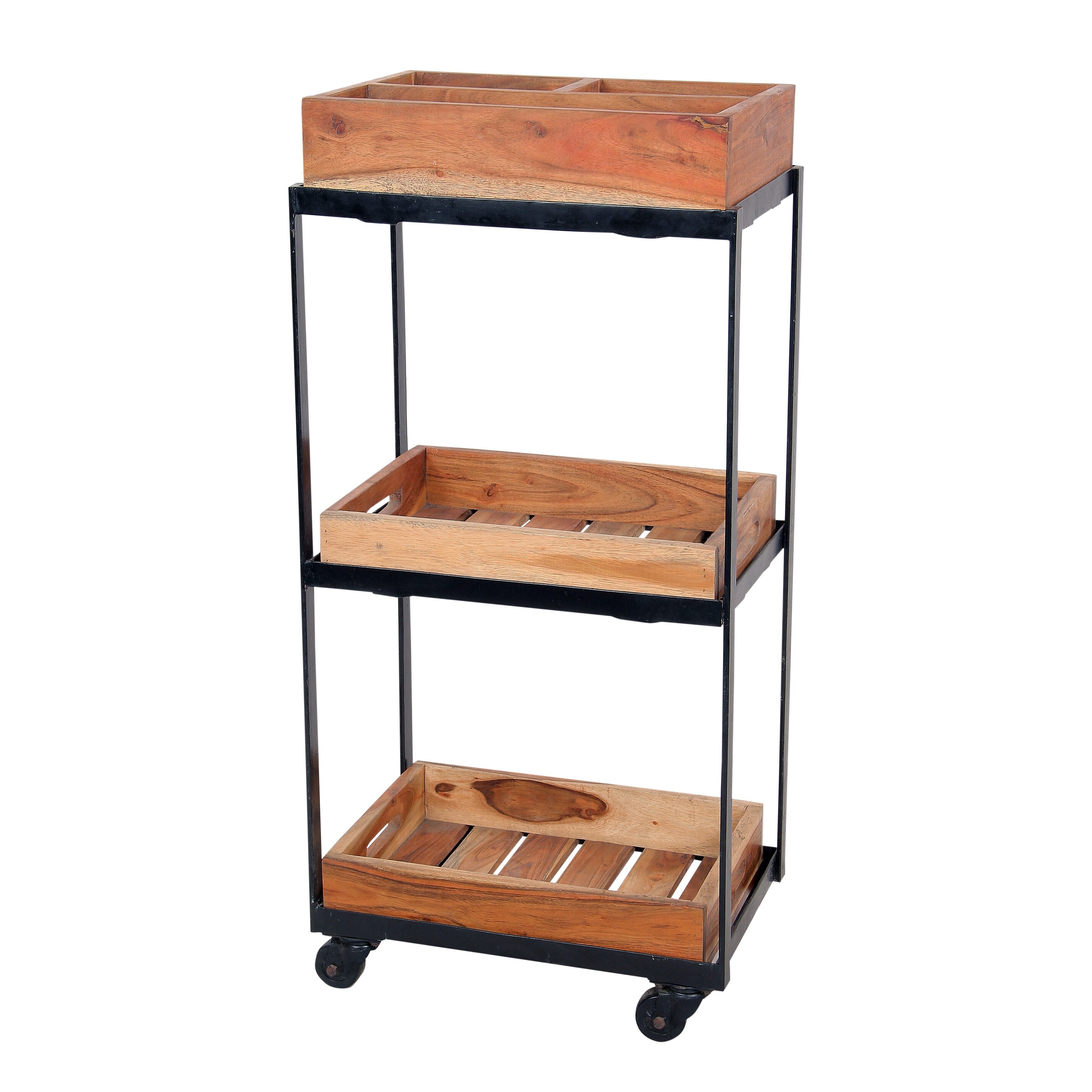 Benjara Wooden Storage Utility Cart Wayfair