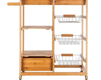 Rolling Wooden Kitchen Island Storage Utility Cart Dining Trolley With Drawers Storage Basket Slatted Shelves Wine Racks Towel Rack Pinewood And Stainless Steel Material Buy Online In India At Desertcart In Productid