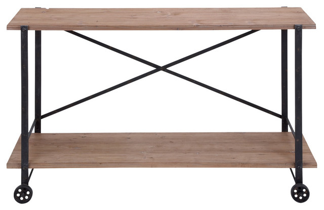 Utility Cart Top Bottom Brown Wood Shelves Black Metal Home Decor Industrial Console Tables By Gwg Outlet