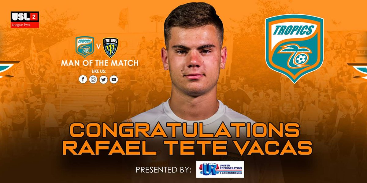 Lakeland Tropics Congratulations To Rafael Vacas For Winning The United Refrigeration Air Conditioning Inc Man Of The Match Tropics Are In Action Saturday At Bryant Stadium At 7pm Were