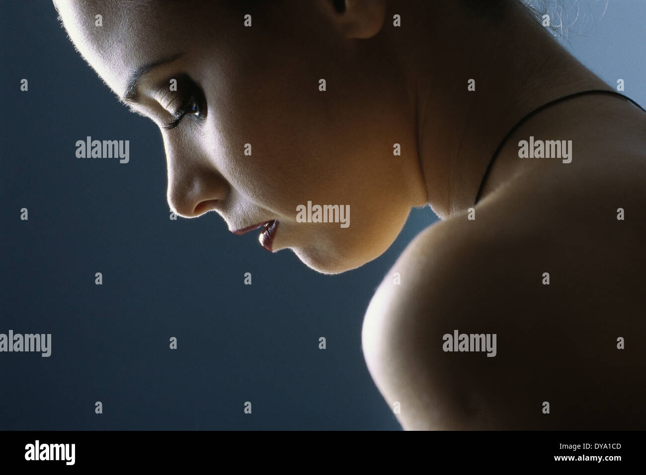 Profile Portrait Of Beautiful Young Woman Looking Up Over Dark Stock Photo Picture And Royalty Free Image Image 928