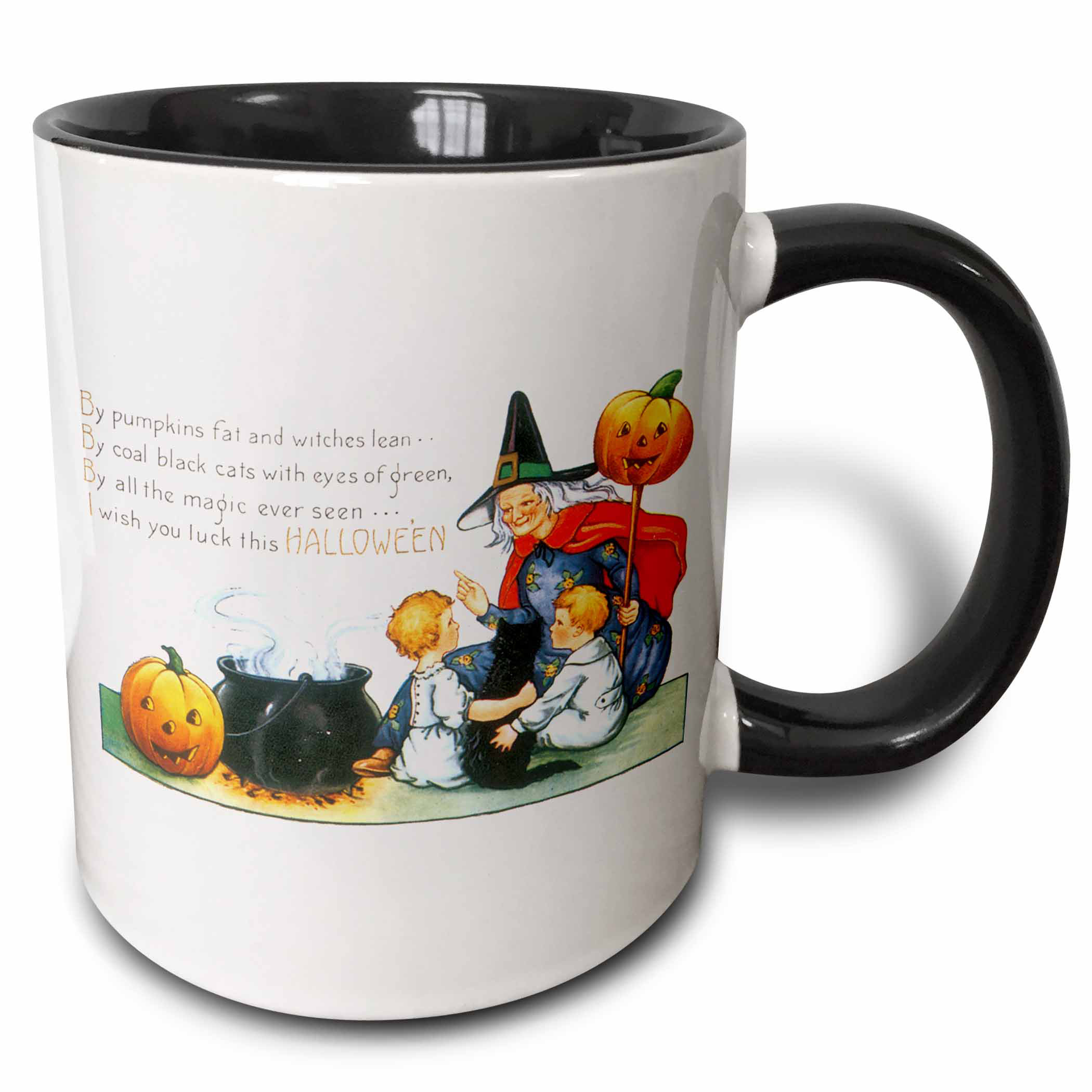 East Urban Home Vintage Halloween Witch With Little Children A Cat And A Steaming Cauldron Coffee Mug Wayfair