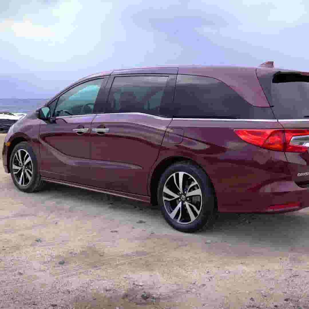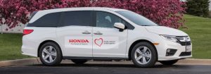 Honda Odyssey Minivan Modified For Covid 19 Testing In Detroit Exterior Side Shot With White Paint Color Parked Under A Tree With Pink And Purple Flowers O Atlantic Honda