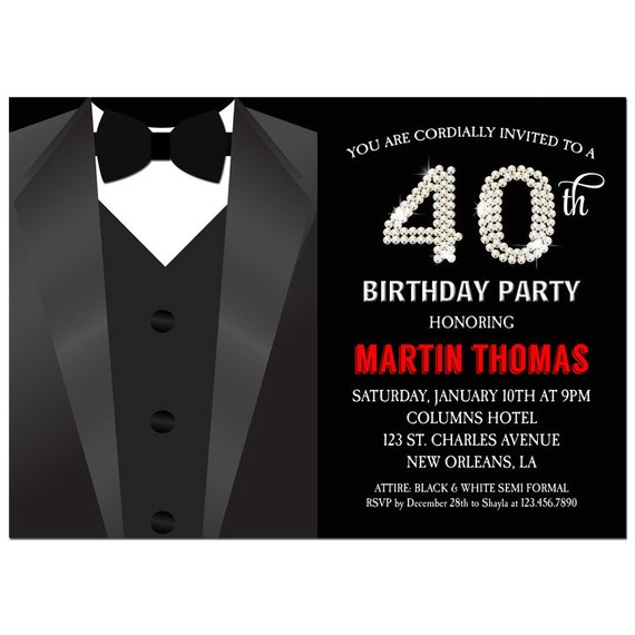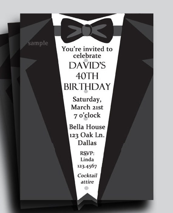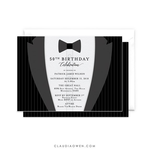 Black Tie Invitation Tuxedo Invitation Men Birthday Etsy