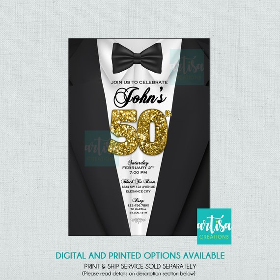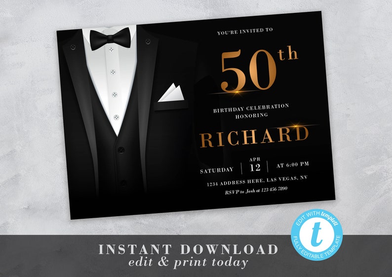 Tuxedo Invitation 50th Birthday Invitations Instant Etsy Invitation Template Groomsmen Invitation 50th Birthday Invitations