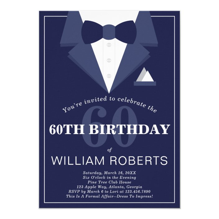 60th Birthday Party Invitation Tuxedo Invitation Zazzle Com