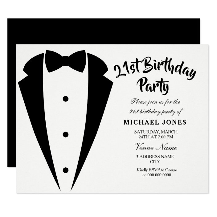 Mens 21st Birthday Party Invitations Tuxedo Invites Black Silver 10 30 40 50 Ebay