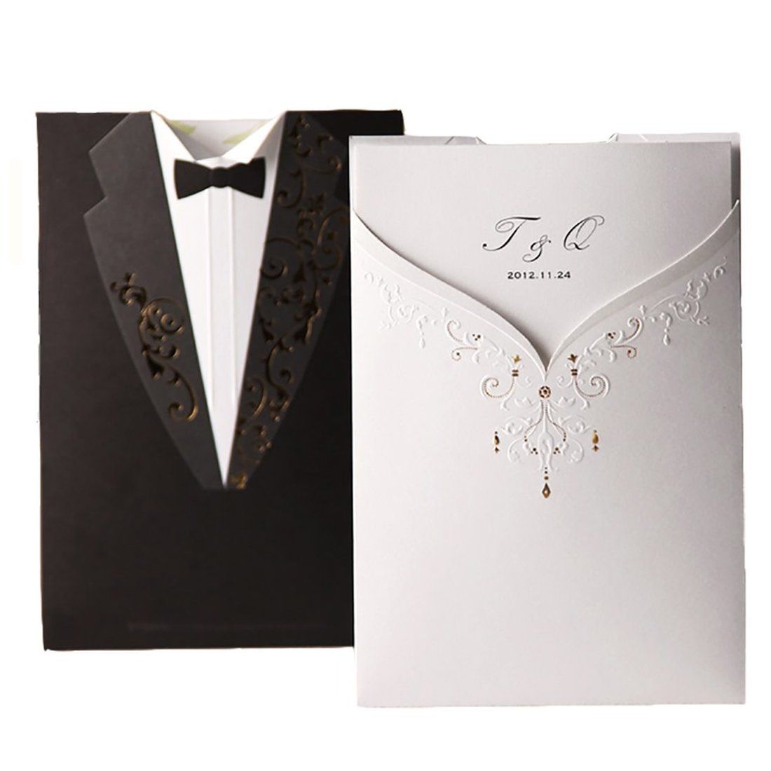 Black White Laser Cut Wedding Invitations Card Groom And Bridal Tuxedo Invitation Marriage With Envelopes E Postcards Easter Cards From Laowang1769 4 97 Dhgate Com