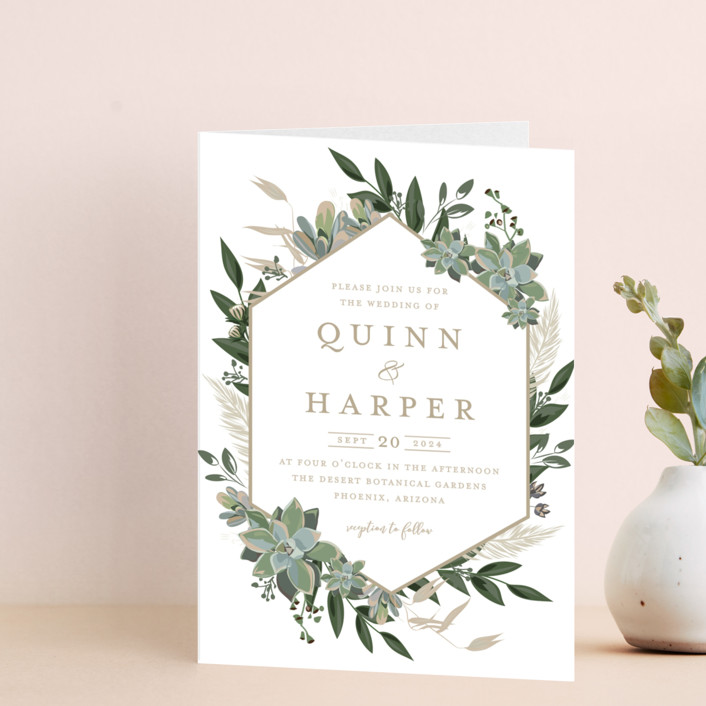 Succulent Surround Four Panel Wedding Invitations By Susan Moyal Minted