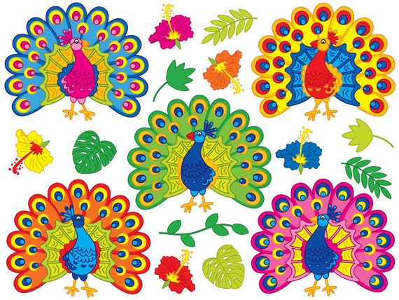 Peacock Clipart Digital Vector Peacock Tropical Leaf Etsy