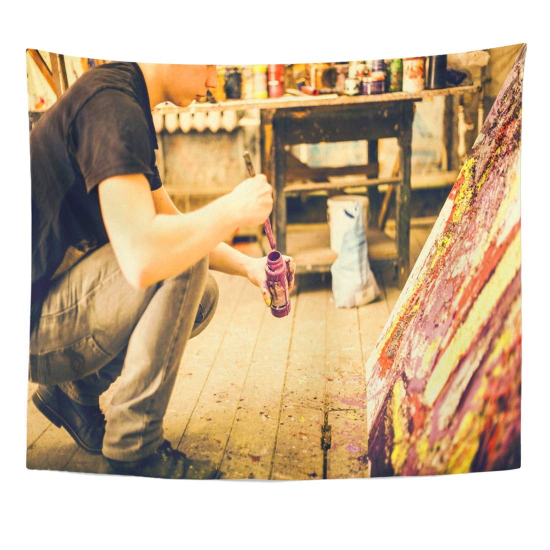 Refred Man Green Artist Hand Paintbrush At Painting Process Workshop Wall Art Hanging Tapestry Home Decor For Living Room Bedroom Dorm 51x60 Inch Walmart Com Walmart Com