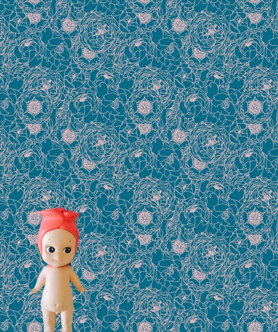 1 12 Wallflowers Pink On Blue Dollhouse Wallpaper Digital Etsy