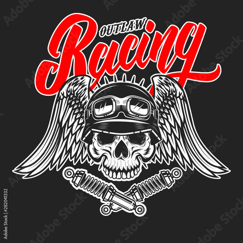 Outlaw Racing Emblem Template With Biker Skull Design Element Royalty Free Cliparts Vectors And Stock Illustration Image