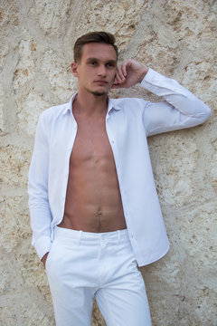 Handsome Relaxed Casual Young Man In An Unbuttoned Shirt Over Stock Photo Picture And Royalty Free Image Image