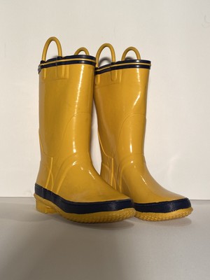 Kids Yellow Rubber Rain Boots Steel Shank M 11 12 Ebay
