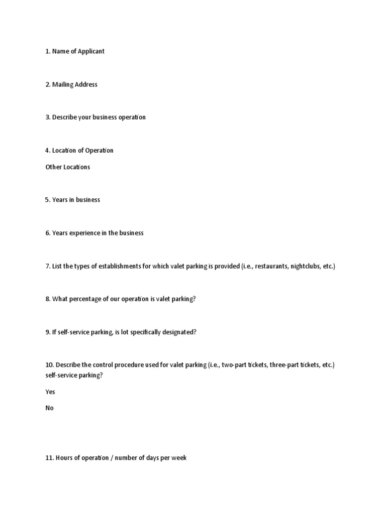 Blank Template For Draf Valet Parking Proposal 1 Fraud Parking Lot