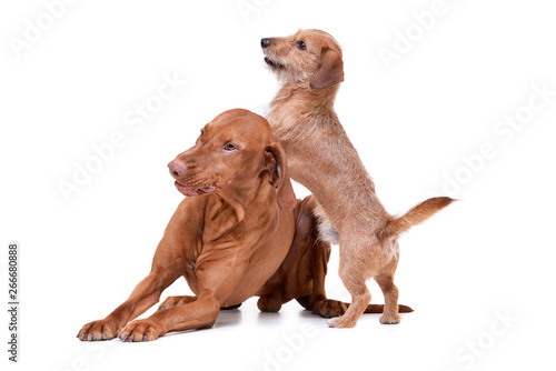 An Adorable Magyar Vizsla And A Wired Haired Dachshund Mix Dog Playing On White Background Buy This Stock Photo And Explore Similar Images At Adobe Stock Adobe Stock