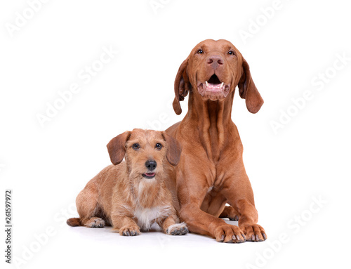 Studio Shot Of An Adorable Magyar Vizsla And A Wired Haired Dachshund Mix Dog Buy This Stock Photo And Explore Similar Images At Adobe Stock Adobe Stock