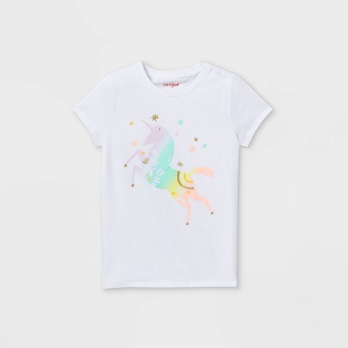 Girls Rainbow Unicorn Graphic Short Sleeve T Shirt Cat Jack White Target