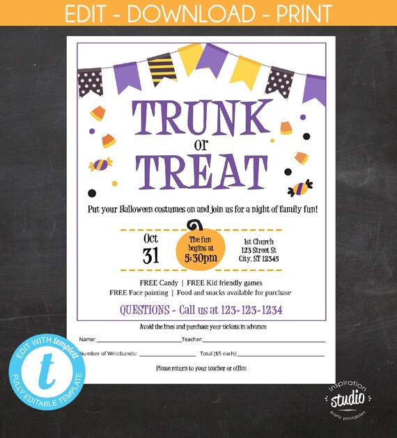 Trunk Or Treat Flyer Instant Download Halloween Template Etsy